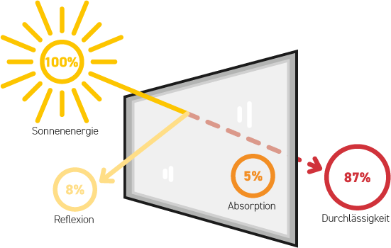 Sonnenschutzfolien sorgen für ein angenehmes Raumklima und helfen dabei, auch bei grosser Hitze im Innenraum einen kühlen Kopf zu bewahren. Sie verhindern bis zu 80% der Hitzeeinstrahlung und dienen zusätzlich als Sicht-, Blend- und UV-Schutz. Diese Hochleistungsfolien können auf fast allen Glasarten appliziert werden. Mit Sonnenschutzfolien lässt sich der Energiebedarf senken und somit die Kosten für Klimatisierung, Beleuchtung und Heizung reduzieren.